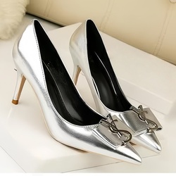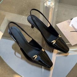 Lüks yüksek kaliteli kadın yüksek topuklu Metal burunlu açık partiler için sivri burun tarzı marka logosu