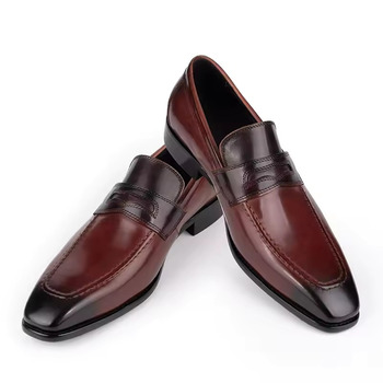 Yüksek kaliteli erkek resmi ayakkabı el yapımı özel loafer'lar kare ayak şık parti düğün deri ayakkabı yükseklik artırılması sonbahar